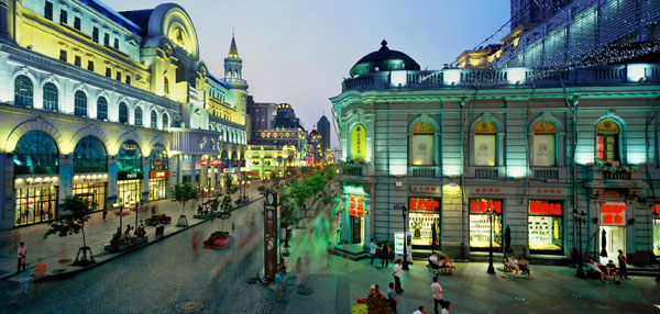 中央大街是东北最繁盛、最有规划的一条商业步行街,北起江畔的防洪纪念塔广场,南接新阳广场,长1400米,仍保持原光滑的方块花岗石铺砌的路面,其角色就有如香港的弥敦道。整条街区分为多个不同的段落,两旁耸立的不是大型的百货公司,便是有名的时装店及特色食肆。由于街上禁止车辆行使,因此不论是不平日或假期,街上的人潮同样是川流不息。这条长街始建于1900年,街道建筑包罗了文艺复兴,巴洛克等多种风格的建筑71栋。涵盖了欧洲最具魅力的近300年文化发展史。现在的中央大街已经成为了集休闲、游览、购物为一体的步行街。
